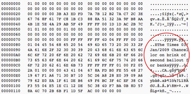 The Antithesis: Bitcoin. Born in the ashes of that 2008 collapse. Satoshi Nakamoto embedded a protest in the very first block: “The Chancellor on brink of second bailout for banks.” A digital Woodstock. Cypherpunks sought to “exit the system,” demanding trustless, anonymous, censorship-resistant money that no central banker or anyone else for that matter could print into oblivion, subvert, or control